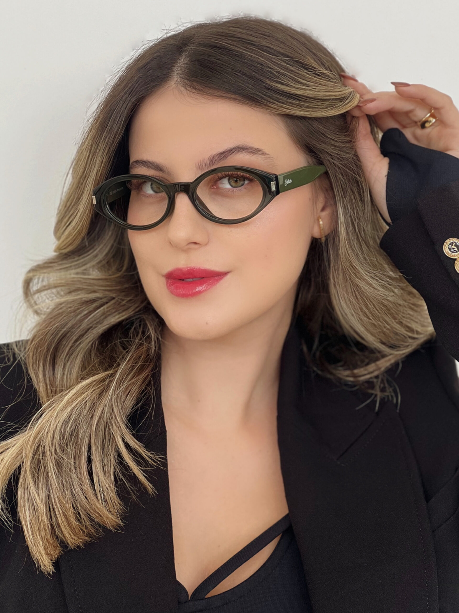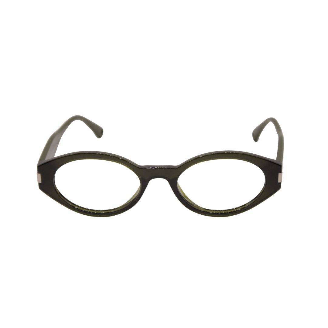 Formato oval exclusivo com detalhes marcantes e acabamento em tom verde translúcido. Estilo autêntico, ideal para quem busca personalidade e originalidade.