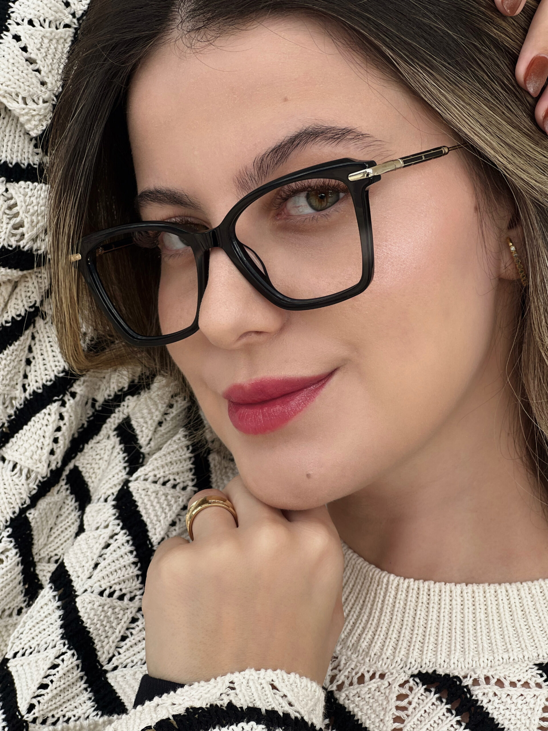 Design elegante com formato levemente gatinho e detalhes metálicos nas hastes. Sofisticação, estilo e conforto em uma peça marcante e versátil.